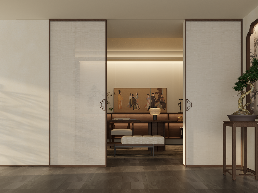 宋式空間講究“流動”與“可變”,屏風、隔扇的運用靈活多變,以適應不同的生活場景。這種對空間靈活性的追求,與當代開放式、多功能的家居理念不謀而合。門,尤其是推拉門,正是實現這種靈活性的關鍵。