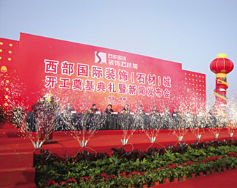 西部國際裝飾(石材)城的招商工作已全面展開,并與眾多石材商家達成意向。預計2009年4月正式開盤,2009年7月西部國際裝飾(石材)城一期主體建成,計劃2009年10月,市場將全面開業。