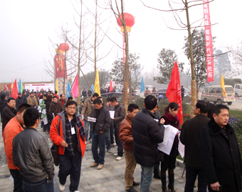 西部國際裝飾(石材)城招商中心外排隊認購商鋪的商家